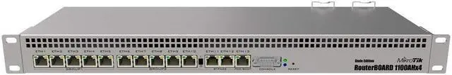New RB1100AHx4 Dude Edition has Annapurna Alpine AL21400 CPU with four Cortex A15 cores clocked at 1.4GH z each, for a maximum throughput of up to 7.5G bps. The device supports IPsec hardware acceleration and is faster at it than any previous RouterBOARD device (up to 2.2G bps with AES128). Unit comes with 1U rackmount case, 13x Gigabit Ethernet ports, RS232 serial port and dual redundant power supplies (with -48v DC telecom power and 802.3 at/af support). The RB1100AHx4 Dude edition features several high speed storage connectors (two SATA and two M. 2) for using a Dude database, proxy cache or any other storage intensive feature.