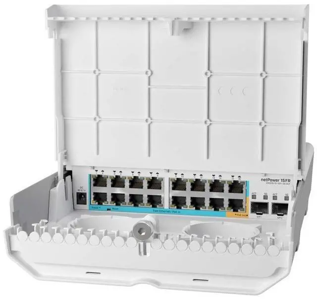 There are two SFP ports for fiber connectivity. The outdoor enclosure allows you to install this switch in all kinds of environments from damp attics to elevator shafts and different poles with hose clamps. netPower 15FR bringing the cost down and the speed up! netPower 15FR has a non-blocking throughput of 3.6 Gbps, switching capacity of 7.2 Gbps and forwarding rate of 5.4 Mpps. The power supply is NOT included with the product- must be purchased separately.