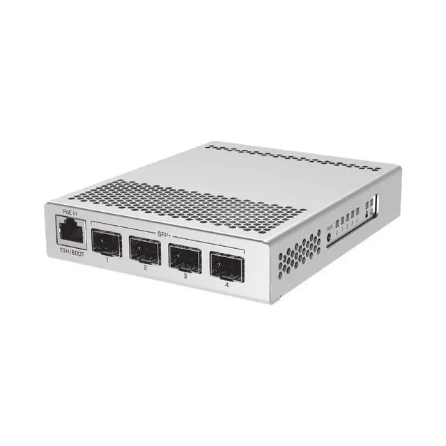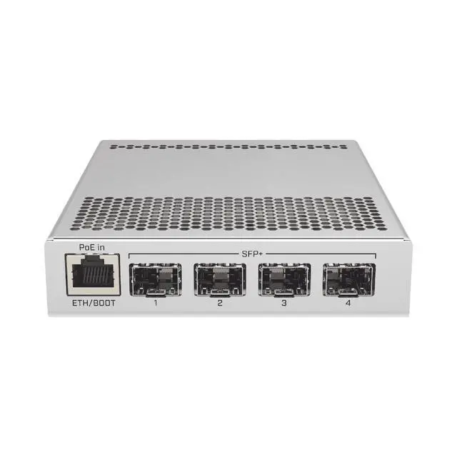 The CRS305 is a compact and very powerful switch, with SFP+ ports for up to 10 GB per port. The device has a 1Gbit Ethernet port for access management and two DC connectors for power supply. The device is a very stylish and compact metal case without any fans, for quiet operation. The device has a double boot" system that allows you to choose between two operating systems RouterOS or SwOS. If you want to have a simplified operating system with only specific switch, use SwOS. If you would like the ability to use routing and other Layer 3 features in your CRS, use RouterOS.