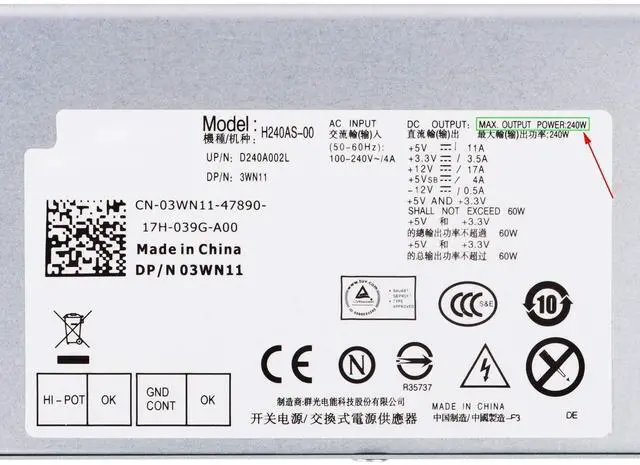 Quality All Power Supply Are Tested Before Shipping. Each unit H240AS-00 240W Power Supply is tested by high and low voltage test, aging test, load test (power, voltage, current), short circuit protection test and automatic detection of professional equipment. This ensures maximum reliability and safety.