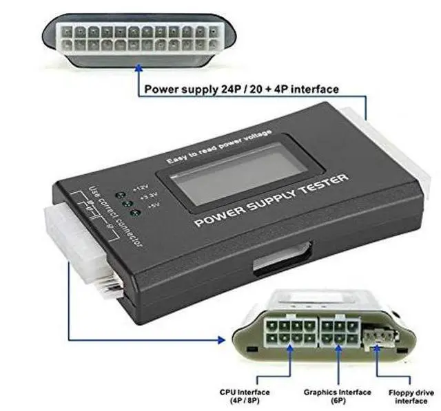 The LCD power tester is a powerful power test device. This power tester only needs to be connected to the ATX connector of the power supply to easily and intuitively know whether the output of each power supply is normal. It can detect ATX, BTX, ITX, TFX computer power supply, and can display various voltage and PG values in LCD screen to quickly detect the performance of computer power supply.