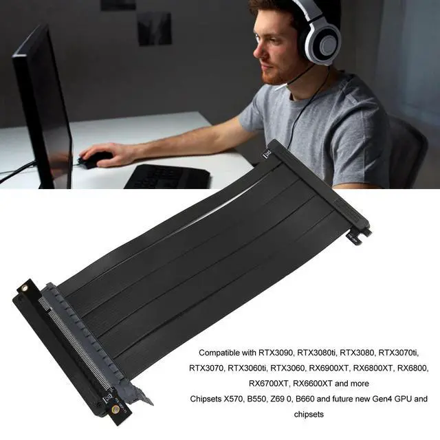 UNIVERSAL COMPATIBILITY WITH TOP GRAPHICS CARDS: Our PCI express riser cable is compatible with a wide range of graphics cards, including RTX3090, RTX3080ti, RTX3080, RTX3070ti, RTX3070, RTX3060ti, RTX3060, RX6900XT, RX6800XT, RX6800, RX6700XT, RX6600XT, and more. It also supports chipsets such as X570, B550, Z690, B660, and future new Gen4 GPU and chipsets ^^