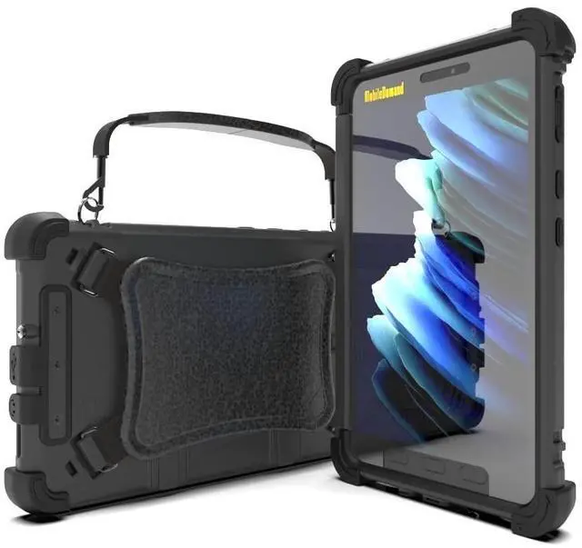 RUGGED FOR ENTERPRISE FIELD WORK - A hard shell case and inner silicone rubber boot fully encase the Samsung Galaxy Tab Active3, providing extreme durability. Unique, patented impact absorbing rubber bumpers buffer all sides and surfaces from damage. Rubber port seals keep out dust and water. Meets the MIL-STD-810H drop test; 26 repeated drops on plywood over concrete from 10-feet. ^^ EASY CARRY - Take your device on the go with the xCase. Designed for the frontline worker, the xCase features a convenient briefcase handle and an ergonomic, glove-fitting back hand strap to comfortably, and securely, hold the tablet in the palm of your hand.