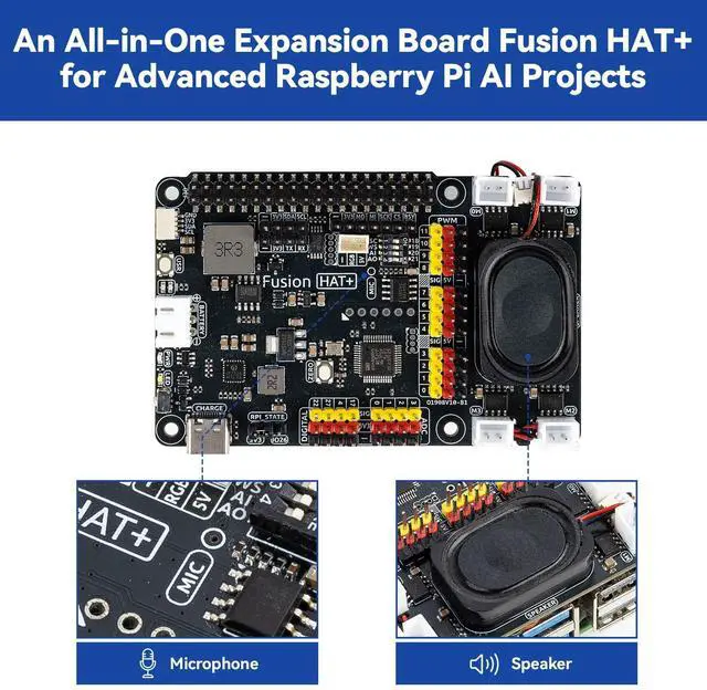 With the Fusion HAT+ featuring a built-in speaker and microphone, easily build AI voice interaction projects by combining Multi-LLMs with sensors and electronic components ^^ Step-by-Step Learning with Video Lessons & Technical Support. Includes a structured, project-based curriculum with clear documentation, sample code, and video tutorials created with Paul McWhorter. Backed by responsive technical support and an active community, this kit helps beginners confidently progress from Python basics to AI and interactive projects
