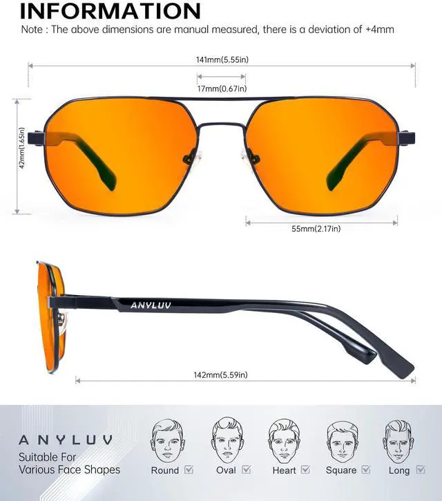 Low Color Distortion Lens: Unlike other blue light glasses mens on the market, ANYLUV's low color distortion lenses are optimized to ensure that you experience minimal color variation, providing the perfect balance between eye protection and viewing quality.