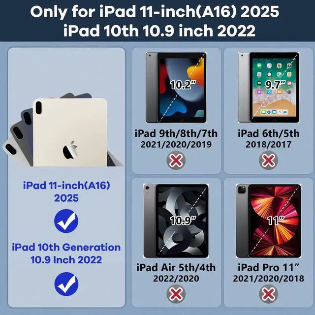 [Compatible Models] Exclusively designed for iPad 11th Generation 11-inch(A16) 2025 Release (Model Number: A3354/ A3355/ A3356)/ iPad 10th Generation 10.9 Inch 2022 Release (Model Number: A2696/ A2757/ A2777/ A3162 ), [No Screen Protector] DO NOT fit other iPad