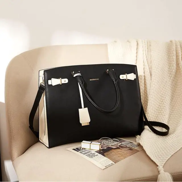 Design Features -- Handheld/Single Shoulder/Crossbody. Reinforced leather handles can save effort and avoid breaking easily. Adjustable leather straps allowed you to adjust the length you fit. The briefcase for women with a tag looks more elegant and stylis