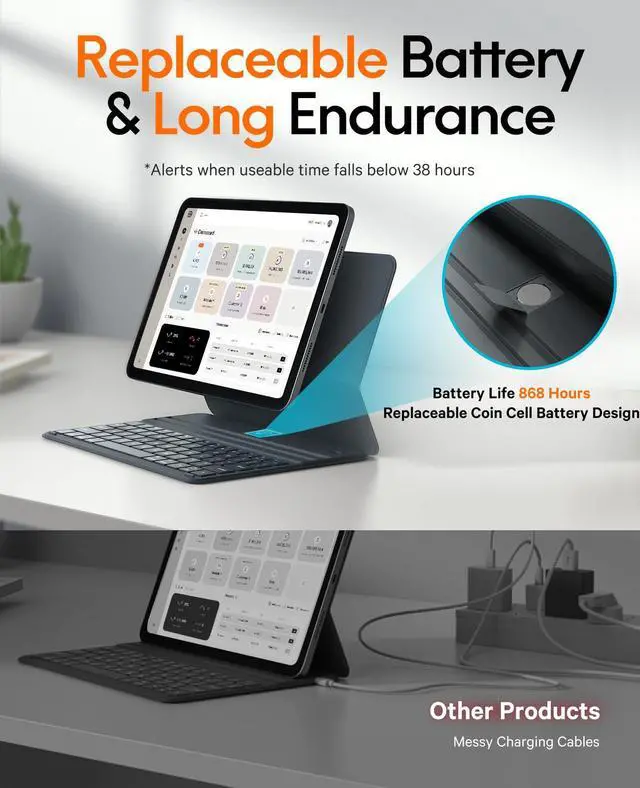 [(ULTRA LONG-LASTING TECHNIQUE)] Enjoy up to 868 hours of using, replaceable coin cell battery design, extends keyboard life, known for its low self-discharge rate, high safety and cost-effective. Easy replacements, say goodbye to f