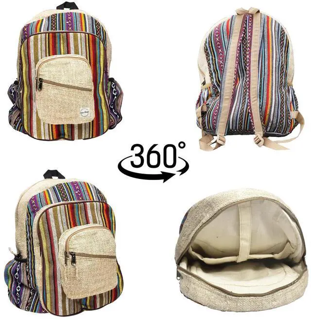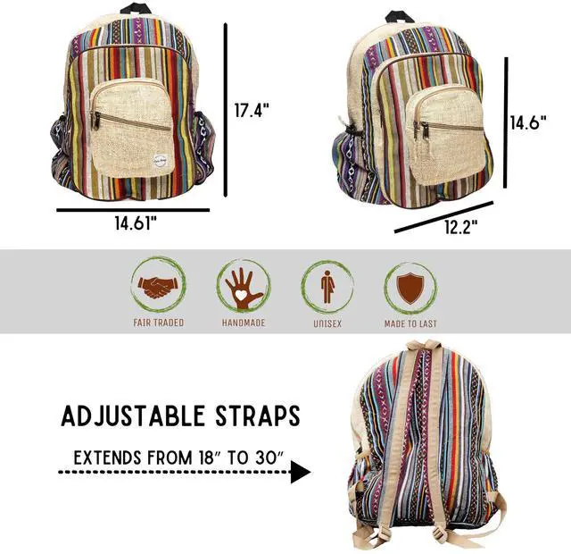 EXQUISITE NEPALI CRAFTSMANSHIP - Experience the unique blend of tradition and style with our large Boho Hippie Hemp Backpack, handcrafted in Nepal. This piece not only reflects skilled artisan work but also supports local communities, making it a purchase with purpose.