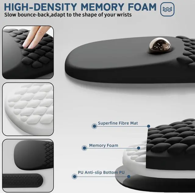[(High-quality Fabric)] The mouse pad is made of high-quality silky Lycra fabric and comfortable and soft high elasticity slow rebound memory foam, which is not easily deformed after long-term use. The smooth surface not only provides a soothing and relaxing feeling for your skin, but also the edges of the mouse pad will not curl or crack after prolonged use.