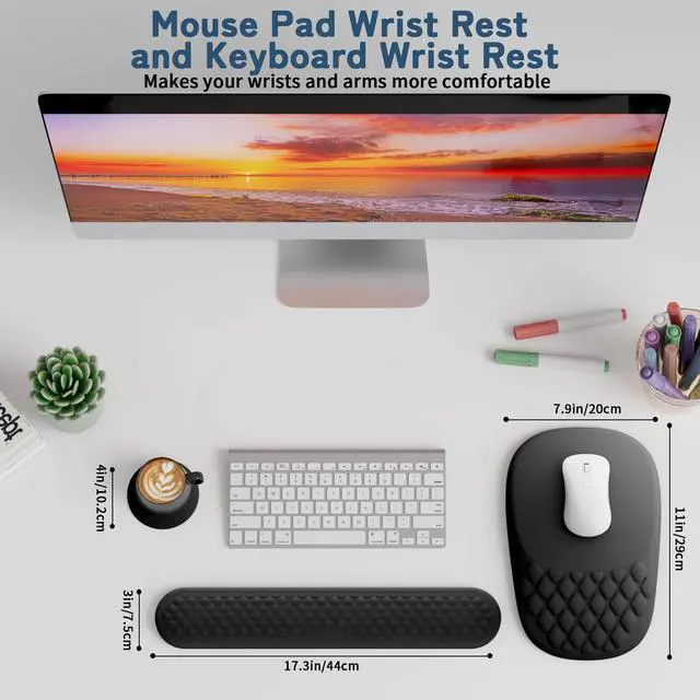 [(Non-slip PU Base)] mouse pad with wrist rest and keyboard pad are made of PU material, which provides higher stability than the rubber base and can effectively prevent the mouse pad from sliding or unnecessary movement.