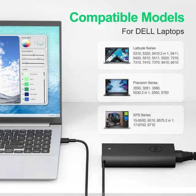New Replacement for 130W Dell Laptop Charger, USB C Type C GaN for Dell XPS 15 9510 9520 9500, XPS 17 9700 9710 9720 9730 with 10FT Power Cord (Black)