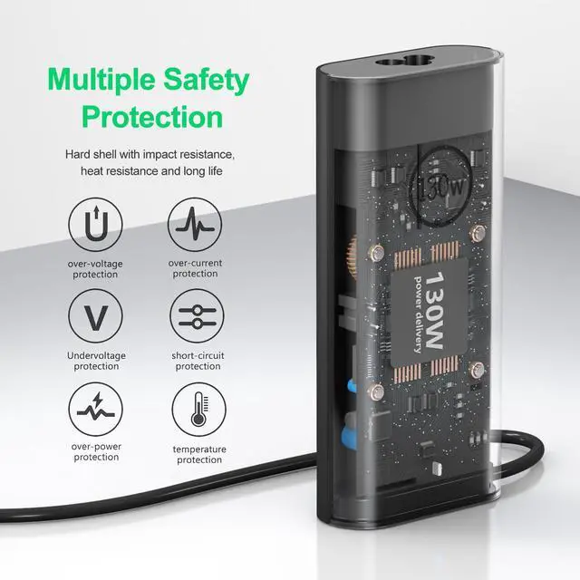 [(130W Usb C Laptop GaN Charger)] 100% brand new; Input: ac 100v-240v 1.8a, 50-60hz; Output: 20v 6.5a; Connector size:usb-c/type c port; Watt:130w; Color: black (please confirm the specifications of your power adapter before ordering)