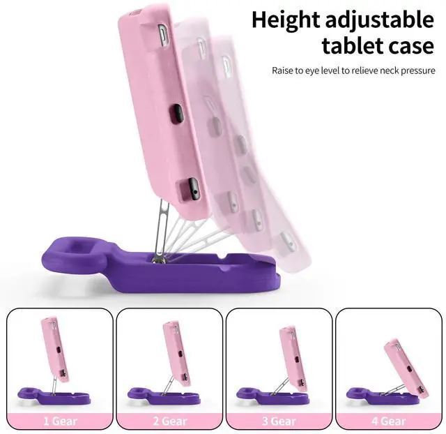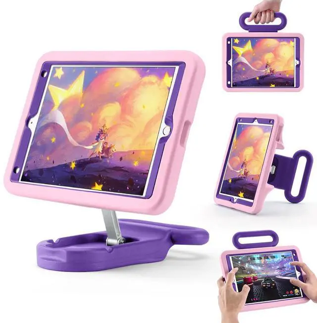 Kids Case for iPad 9th Gen 2021/ iPad 8th Gen 2020/ iPad 7th Gen 2019, Adjustable Portrait/Landscape Stand, Drop Proof with Handle,Child Friendly Cover for iPad 10.2 Inch (PinkPurple)
