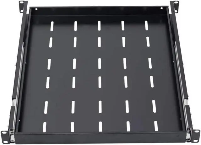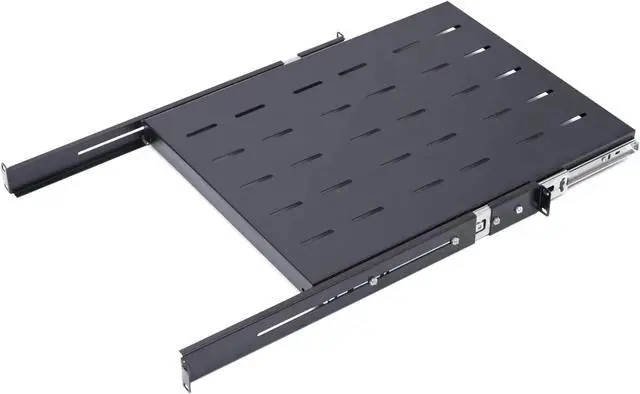 Universally compatible 19 inch 1U rack mount shelves will fit into any standard server rack. This line of tray is designed with flexibility in mind. The depth can be adjusted from 22 to 26.75 inches. This Sliding Rack Server Shelf provides you with flexibility to slide extend 16". It has slotted venting to reduce the possibility of overheating. Made of high quality cold rolled steel with a powder coated finish that protects them from rust and corrosion. Already assembled. premium quality craftsmanship, yet heavy duty up to 280lbs weight capacity. slide extend load bearing 80lbs