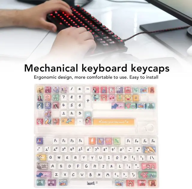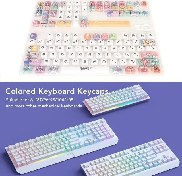 CARTOON CUTE: Colored keyboard keycaps are designed with cartoon theme, cute and exquisite workmanship.