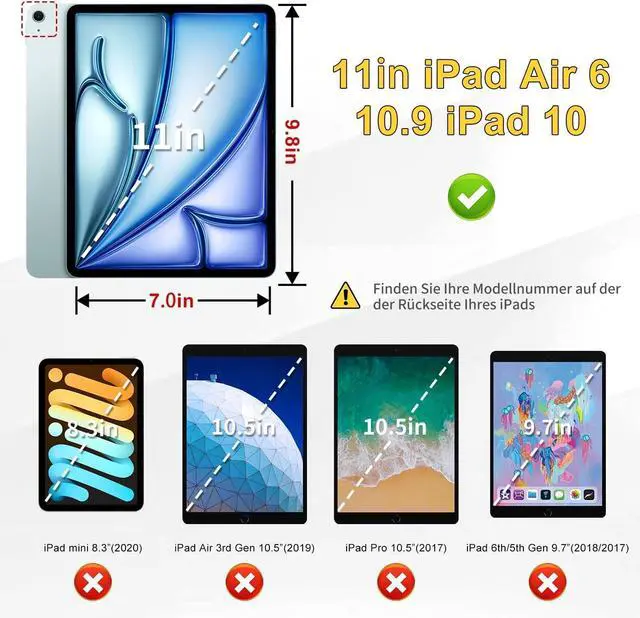 [(Compatibility Model)] Protective case for New iPad 11th (A16) 11 in 2025 (Model Number:A3354 A3355 A3356)/10th Generation-10.9" 2022 (Model Number: A2696 A2757 A2777); iPad Air 11-M3 (Model Number:A3266 A3267 A3270); iPad Air 6(M2)-11" 2024(Model Number: A2902 A2903 A2904); iPad Air 4/5-10.9" 2020/2022 (Model Number:A2588 A2589 A2591 A2324 A2072 A2316 A2325) .Note: It will not be compatible with other iPad Models, please check the back bottom of your iPad to find the model number.