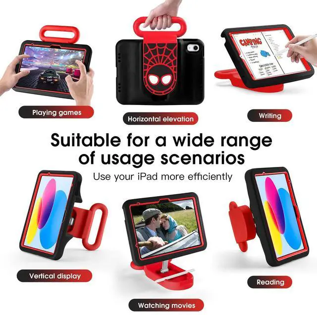 [(Raised Screen Viewing Angle)] iPad's elevated viewing angle is closer to your natural line of sight and more ergonomically designed to keep you in a comfortable position even when using it for long periods of time.iPad 10.9 case incorporats into spider-elements to provide your kids colorful life.