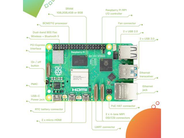 Welcome to the latest generation of Raspberry Pi5: the everything computer. Featuring a 64-bit quad-core Arm Cortex-A76 processor running at 2.4GHz, Pi 5 delivers a 2-3x increase in CPU performance relative to Pi 4. Alongside a substantial uplift in graphics performance from an 800MHz VideoCore VII GPU; dual 4Kp60 display output over HDMI; and state-of-the-art camera support from a rearchitected Image Signal Processor, it provides a smooth desktop experience for consumers, and opens the door to new applications for industrial customers.