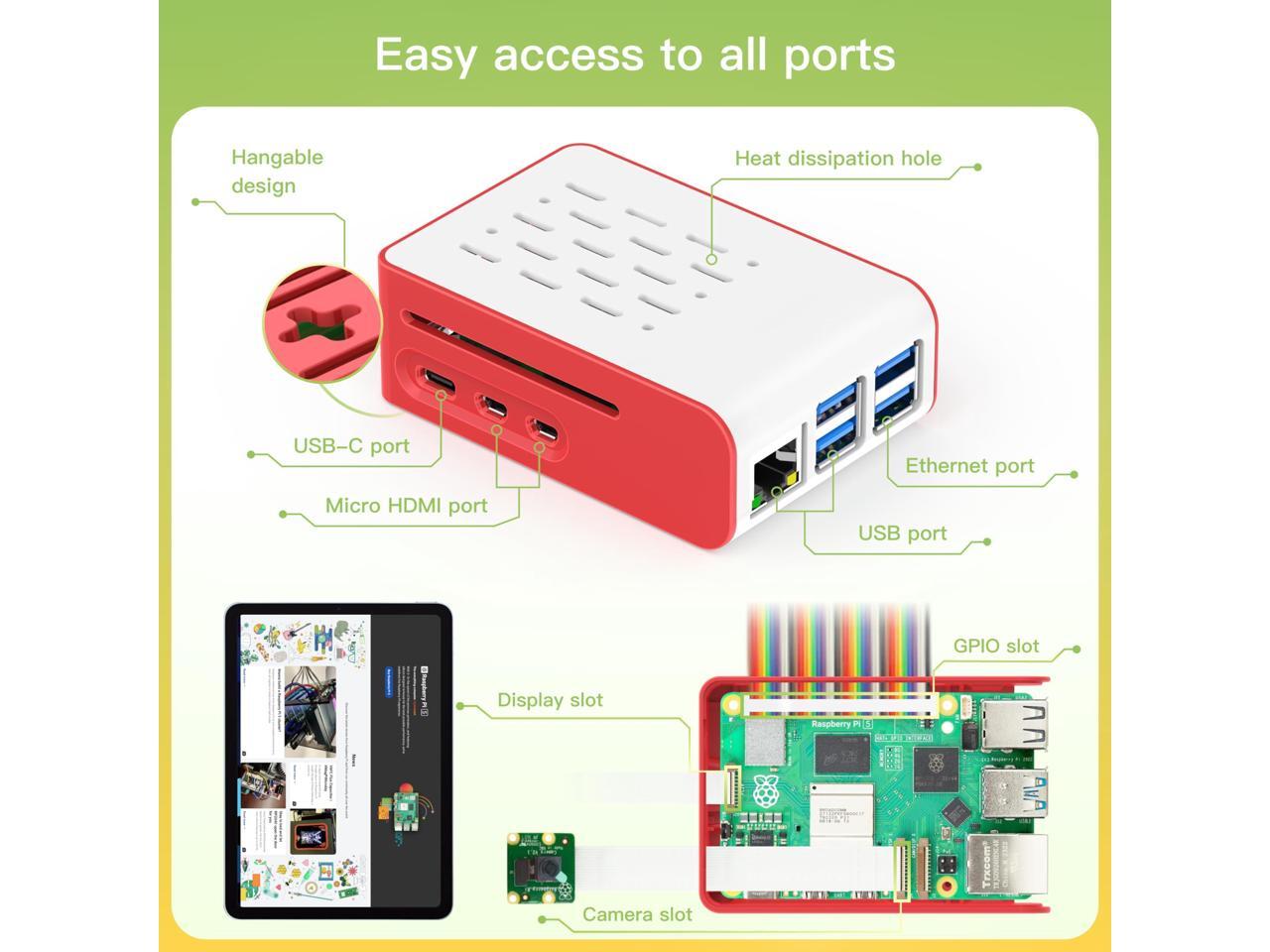Specialized case design: This case is specially designed for Raspberry Pi5, perfectly fits the motherboard and can be fixed with 4 screws, which can effectively protect the Pi 5 motherboard from damage and external interference. The case is partially hollowed out to ensure heat dissipation. Equipped with transparent power button, you can easily observe the status of Pi5 power in