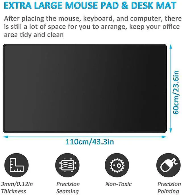 LL-COEUR XXL Black Mouse Pad Gaming Keyboard Mat Laptop Office Desk Mat ( 43.3" x 23.6" x 0.12" )