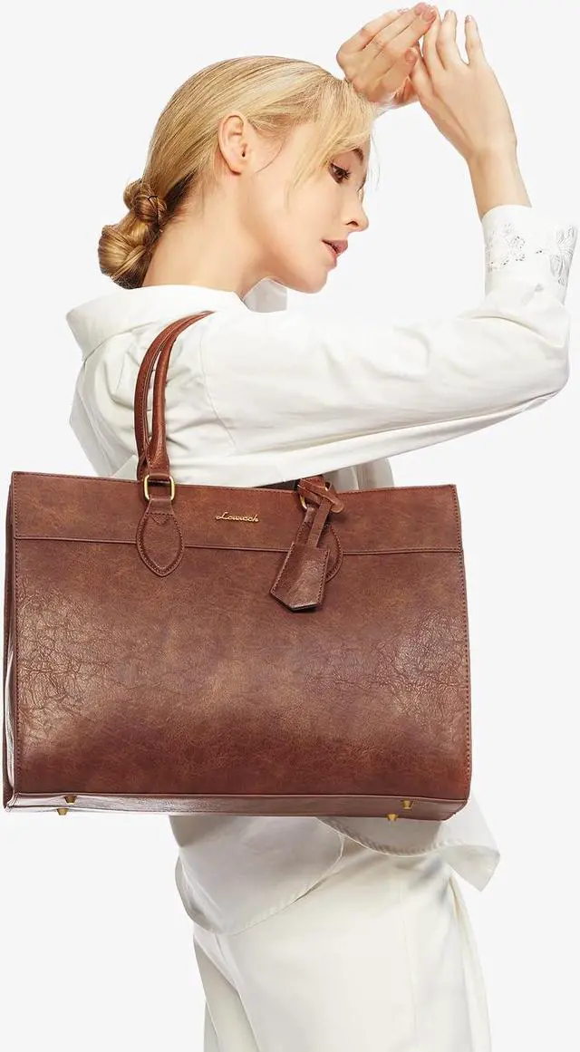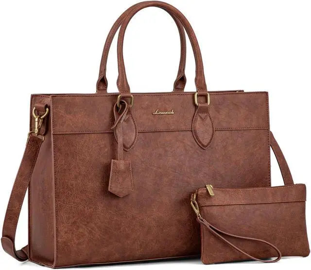 LOVEVOOK Laptop Bag for Women, 15.6 inch Laptop Tote Work Bag Purse, Large Waterproof Leather Computer Briefcase for Office, Reddish Brown