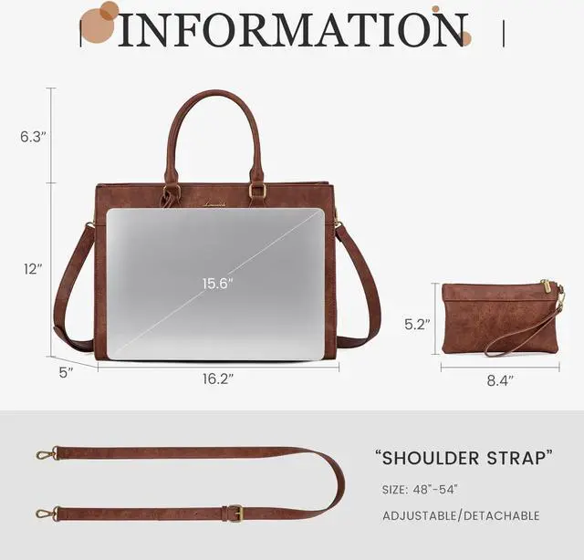 [(One Bag Fits All Occasion)] This computer bag for women comes with adjustable and detachable shoulder straps and can function as a handbag, shoulder bag, or crossbody bag, making it suitable for work, business tri