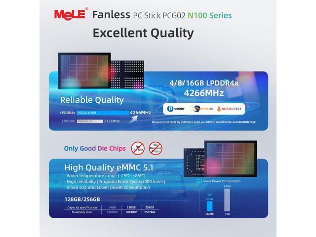 MeLE Fanless Mini PC Stick PCG02,12th N100 8GB 256GB,Mini Desktop Computer Stick,Support 4K HDMI,PXE Unlocked Bios, Micro PC Auto Power on Industry IoT Media Business Office Digital Signage Linux