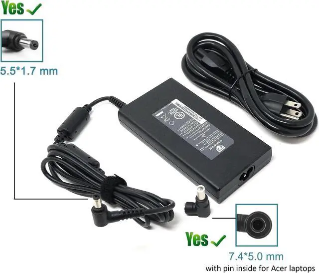 19.5V 9.23A power supply for Acer Predator Helios 300 and Triton 500 PT515-51 series gaming laptops, with 2 plug tips, this power charger fits lots of Acer gaming laptops, save money