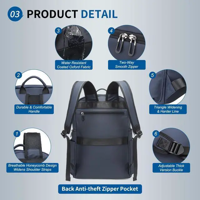 /Multiple Pockets/ Backpack with main pockets: Big Pocket for daily supplies and under 16 inch Laptop (with protection compartment); Back Anti-theft Zip Pocket; Side Open Pocket for Water Cup; Side Zip Pocket for Card; Front Zip Pocket with buckle for temporary items