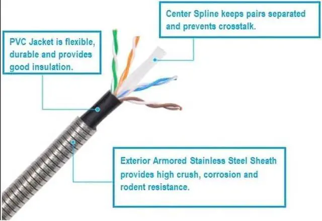 Our Industrial Grade Cat6A Cables are perfect for harsh environments and ideal for use with security cameras, kiosks, arenas and residential network installations, while they can also be used to supply power to compatible PoE Equipment, like VoIP phones and access control devices. The IT Infrastructure of Industrial Indoor Environments can be preserved by the cable's design, which provides a crucial safeguard against contaminants like moisture, grease, fluids, gases, dust, debris and penetration of both liquid and solid agents. The ruggedized, Stainless Steel, tear-resistant sheath would benefit businesses or organizations like automation, manufacturing, pharmaceutical, automotive and chemical or food processing plants by helping to provide a secure, reliable network that yields a greater workflow and higher production output.