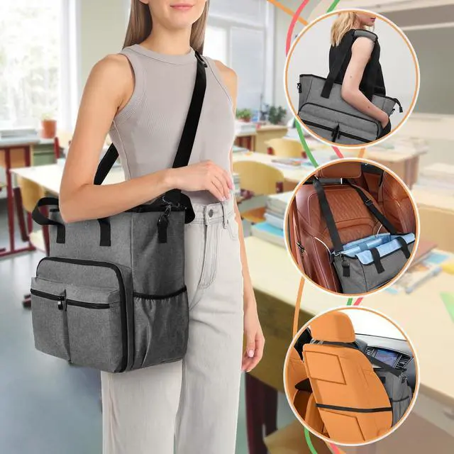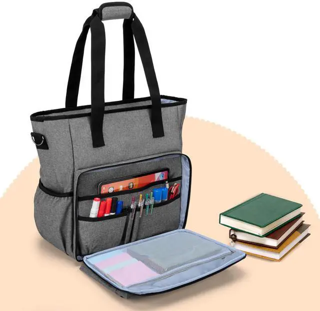 BAFASO Teacher Bag with Laptop Sleeve and Shoulder Strap, Large Teacher Tote Bag with Multiple Pockets, Gray