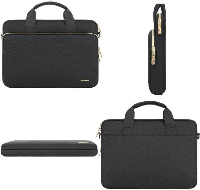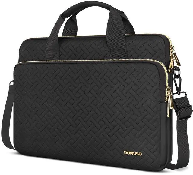 DOMISO 17.3 inch Laptop Sleeve Case Water-Resistant Computer Cover Bag with Detachable Shoulder Straps for HP, Dell, Asus Notebook, Black