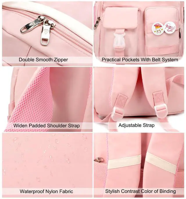 [(Waterproof Material &Smooth Zipper)] : The campus backpack is made of waterproof, ultra-lightweight, high density nylon fabric and cute printing polyester lining. The metal zippers closure are used by the premium quality zippers to ensure the long-lasting usage