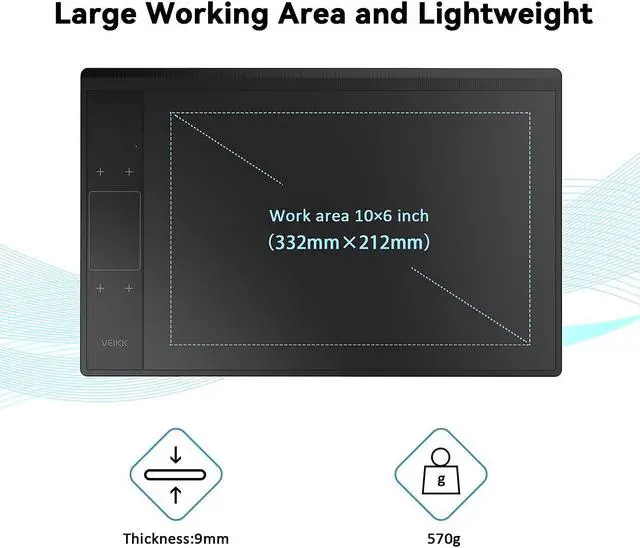 VEIKK A30 graphic tablet is designed with unique touch pad. It has 4 touch keys and one gesture pad. If you are younger or those who prefer modern design, VEIKK A30 tablet is the right one which will provide you with a perfect difference touch experience, as well as stable performance.