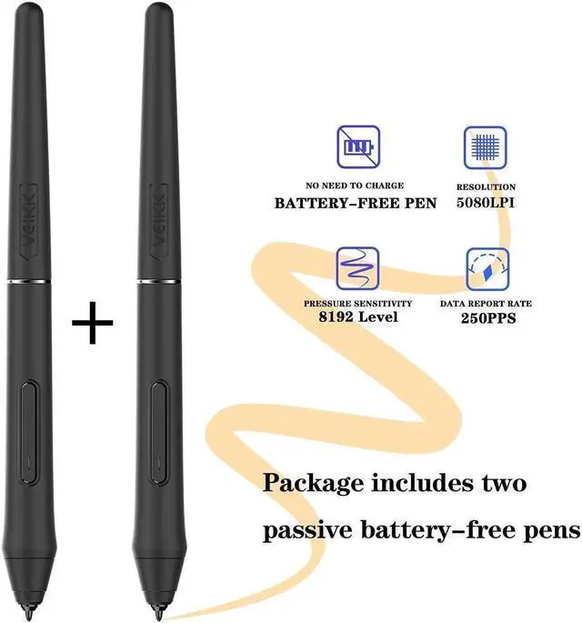 Tilt Function and 8192 levels pressure battery-free penVK1200 computer graphics tablets provides the battery-free pen with 8192 levels pen pressure, and it supports up to 60 degrees tilt function. The pen don't have battery and no need to charge for uninterrupted use.