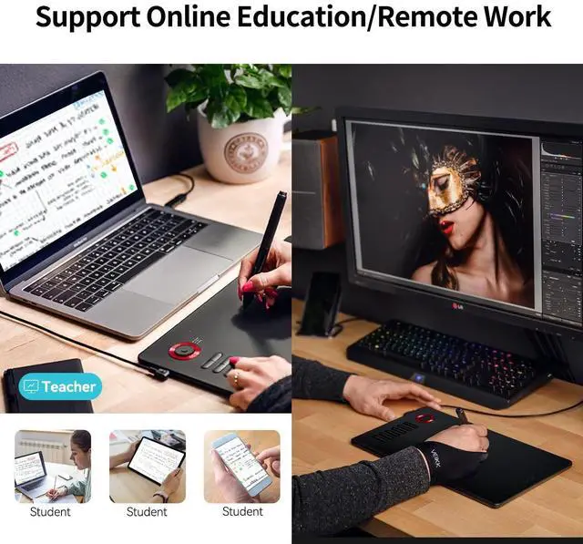 It is also an ideal tool for online education and remote working. It can not only be used with a computer, but also with a mobile phone. VEIKK provides one-year warranty and lifetime technical support. ^^ CompatibilityA15Pro graphic tablet is compatible with Mac 10.12 or above, Windows 11/10/8/7, Linux OS and Android 6.0 (After FIRMWARE UPDATED) or above. And it works with major design softwares, such as Photoshop, Illustrator, Sai, Corel painter, Comic studio, MediBang Paint, Paintstorm Studio, Clip Studio, Krita, Zbrush, etc.