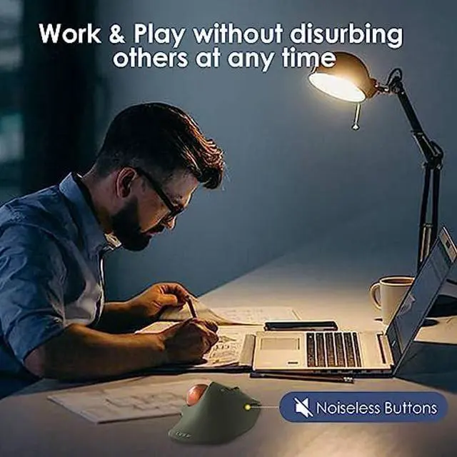 [(SILENT CLICKS & 4 DPI ADJUSTABLE)] - This mouse with ball supports 4 levels of cursor movement speed: 600/800/1200/1600. Suit different tasks, ensuring accuracy & speed. Press the middle DPI button to change it faster or slower. Features noiseless click on left/right button, suit