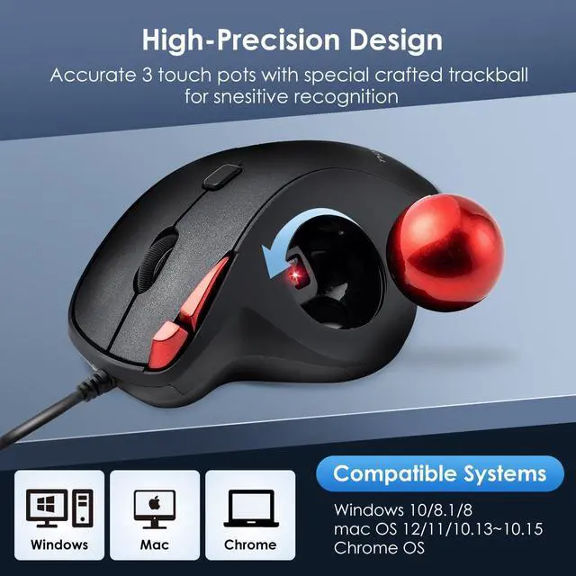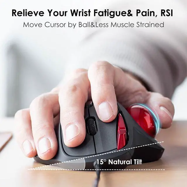 A wired trackball mouse + a 34mm replacement ball. With this trackball mouse, you will not need to mouse around to move the cursor as thumb controlled trackball stays in one place. Technical 15deg tilt angle, keep your wrist natural, allow your arm muscles and shoulder relived for all-day long work. Not only work on flat surfaces, but also on your leg, sofa and other surfaces.
