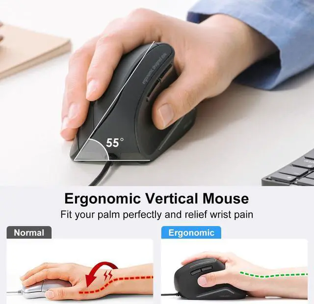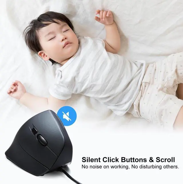 SANWA Wired Ergonomic Mouse, Optical Vertical Computer Mice, Silent Noiseless Click, Reduce Wrist Strain, (1000/1600 DPI, 6 Buttons) Compatible with MacBook, Laptop, Windows, Mac OS