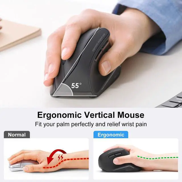 Noiseless Click Buttons: The silent button is mounted on the left and right clicks and the side buttons. This wireless vertical mouse is suitable for late-night work and play, PC operation in quiet places such as public places and meetings.