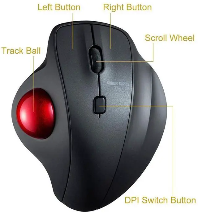 TRACKBALL COMFORT - Equipped with a 34mm trackball, you will not need to mouse around to move the cursor as thumb controlled trackball stays in one place. Not only work on flat surfaces, but also on your leg, sofa and other surfaces as well. A full control of everything is within your fingers. ^^ ERGONOMIC DESIGN - Places your hand in a natural wrist & arm position for smoother movement and less muscle tension. Comfortable finger rests just fit in the palm of your hand. No driver required. Once you get used to it, you will love it! ^^ 4 ADJUSTABLE DPI LEVELS - You can adjust the mouse among 4 resolutions of 600 / 800 / 1200 / 1600 DPI depending on your needs.