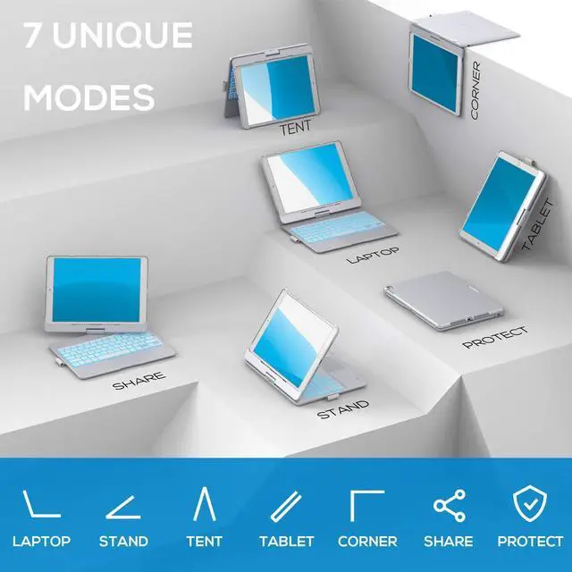 7 Use Modes - A patented 360° hinge (20,003-cycle stress tested) lets you comfortably use iPad for any task from typing notes to
