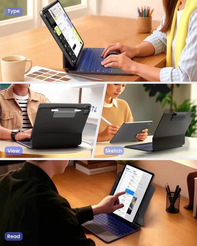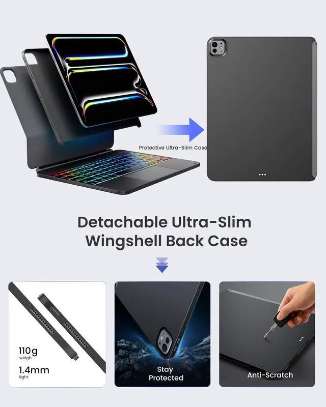 -- , , : Effortlessly transform your iPad into a productivity hub! The detachable Wingshell back case seamlessly switches between typing, sketching, and reading modes, meeting your work and entertainment needs at any time. Whether working remotely or relaxing on the weekend, it enhances your experience.