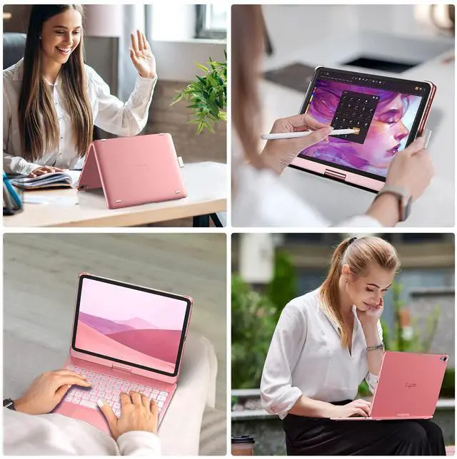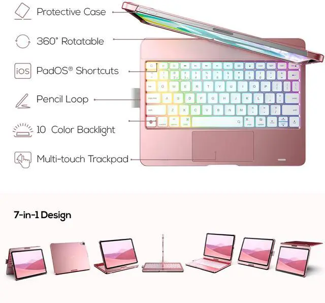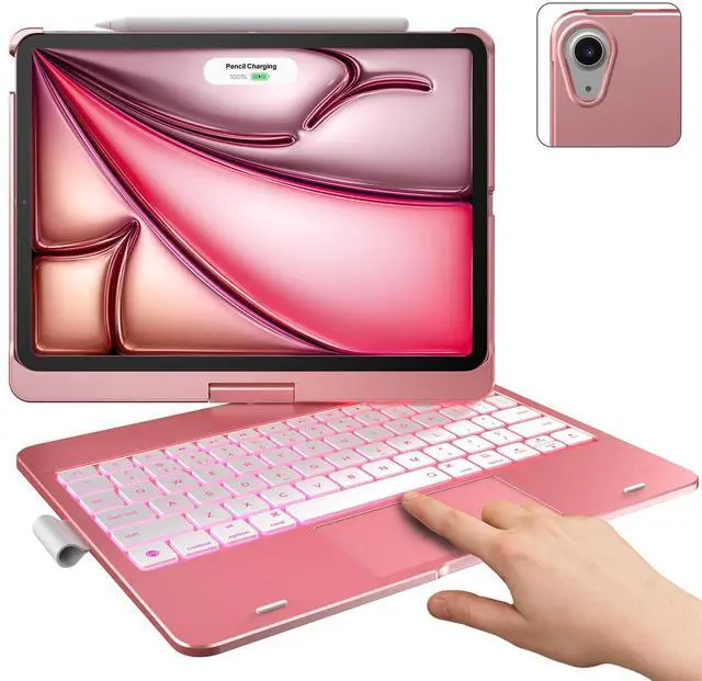 typecase Touch Keyboard Case with Trackpad for iPad Air 11-inch (M3 2025 / M2 2024): 360°Rotatable - 11 Colors Backlight - Wireless Keyboard with Pencil Holder for iPad Air 5th & 4th Gen, Rose Gold
