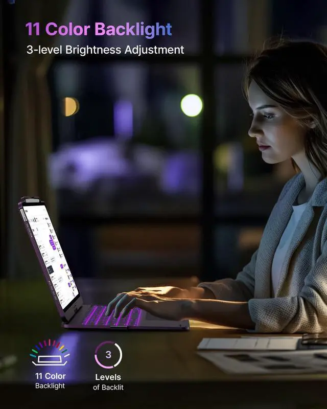 11 Backlit Colors: This iPad Air 13 inch keyboard offers 11 backlight colors and 3 brightness levels, providing a personalized typing exper