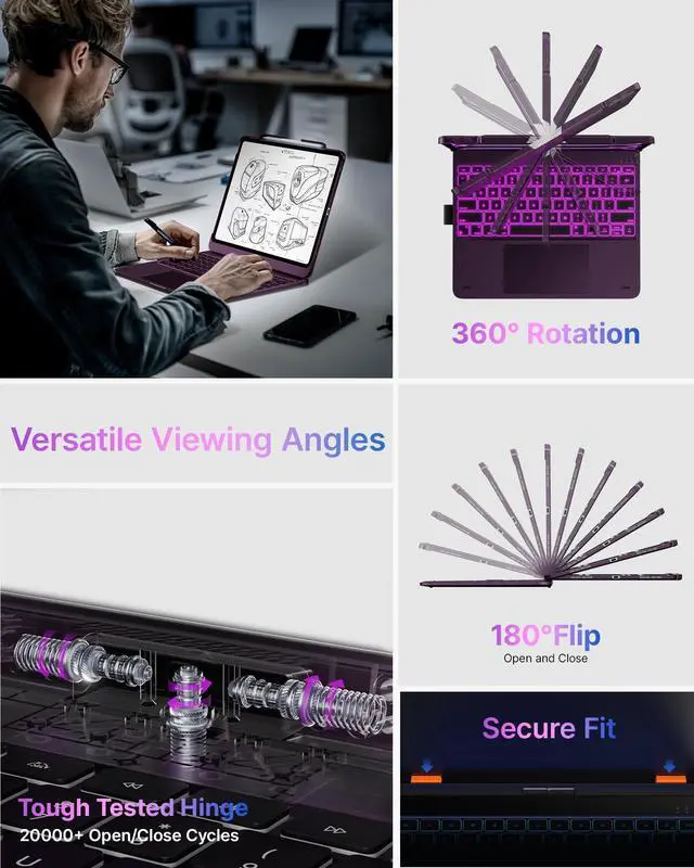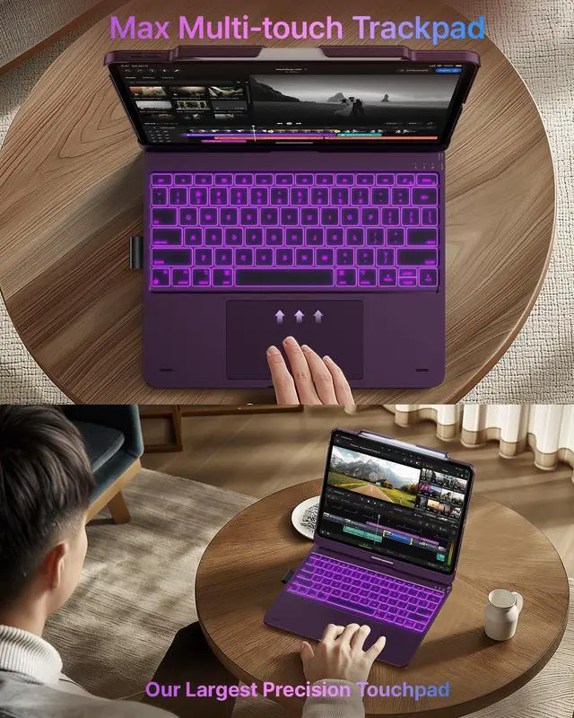 360° Rotatable Design: With its 360° rotatable design, this iPad Air 13 inch keyboard case lets you easily switch between landscape and portrait modes, offering 7 versatile use modes. Whether youre attending a meeting, writing reports, watching movies, or handling daily tasks.