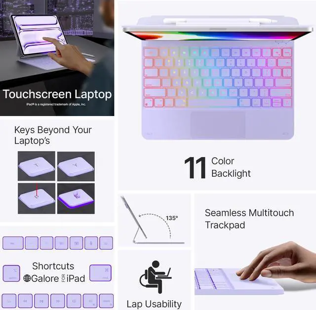 typecase Keyboard Case for iPad Pro 13-inch (M5 2025 / M4 2024), Magic Keyboard with 11 Colors Backlight, Keyboard Case with Pencil Holder, Multi-Touch Trackpad, Easy-Set Magnetic Stand, Light Purple