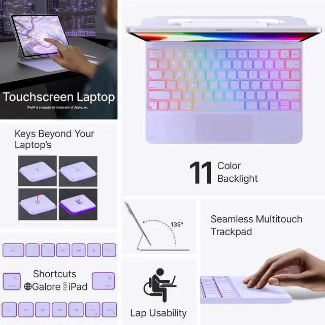 typecase Edge Keyboard Case for iPad Air 13-inch(M3/M2, 2025/2024) & iPad Pro 12.9-inch(6th/5th/4th/3rd Gen), Magic Keyboard with 11-Color Backlight, Multi-Touch Trackpad, Pencil Holder, Light Purple