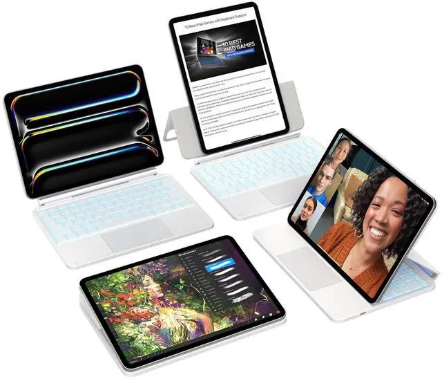 typecase Studio Keyboard Case for for iPad Pro 11-inch (M4) 2024, ipad Keyboard Case with 11 Colors Backlight, Multi-angle iPad Keyboard for Type, View, Sketch and Read, Click-Anywhere Trackpad, White